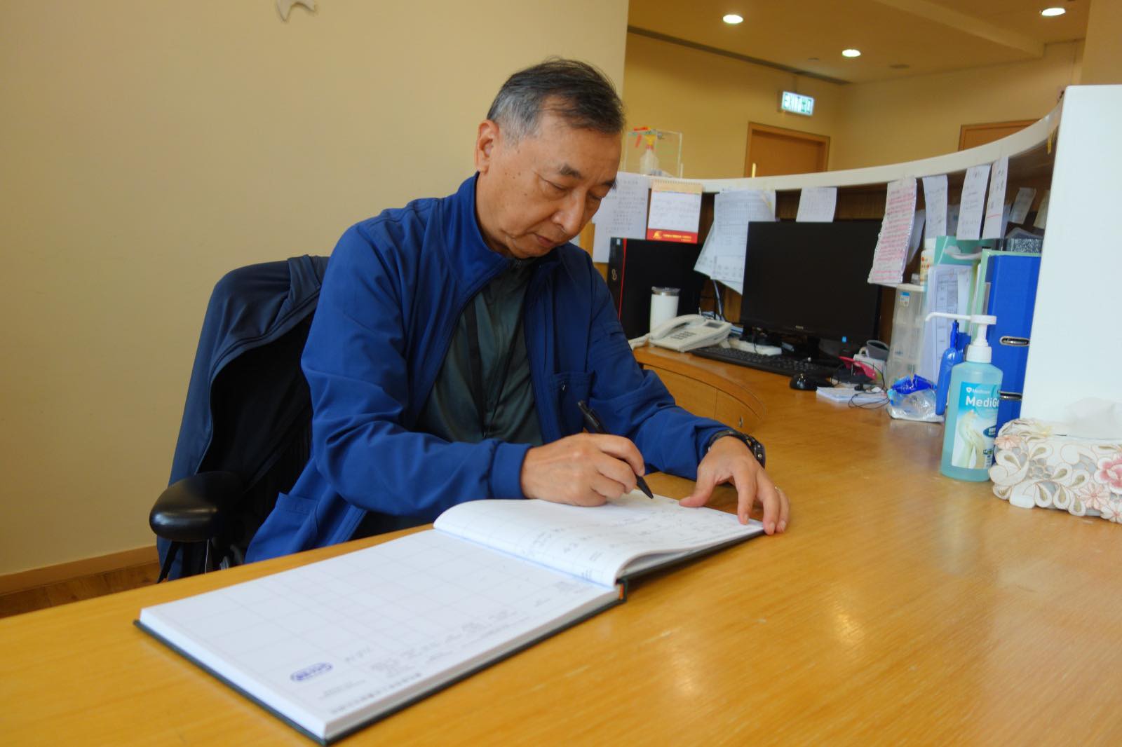 為免忙中有亂,驥哥會反覆核對靈寢室紀錄簿上的各項資料。